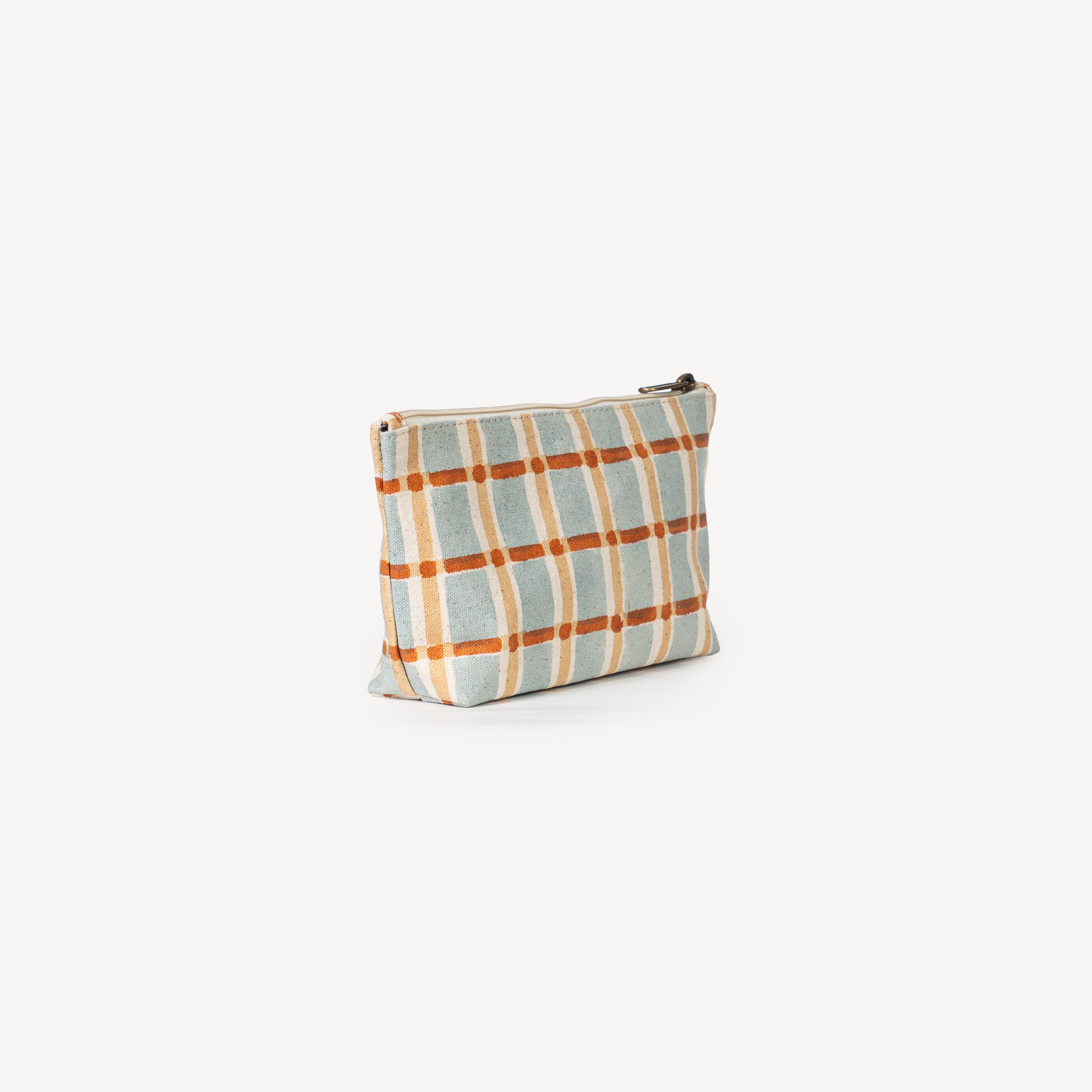 Hand block printed cotton canvas meets waterproof practicality—ideal for make up and coins, earbuds and emergency snacks, or whatever small treasures accompany your day. Tuck it into any bag for instant organization, or use it to keep organized at home.