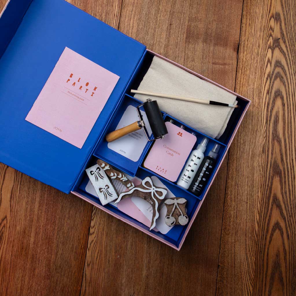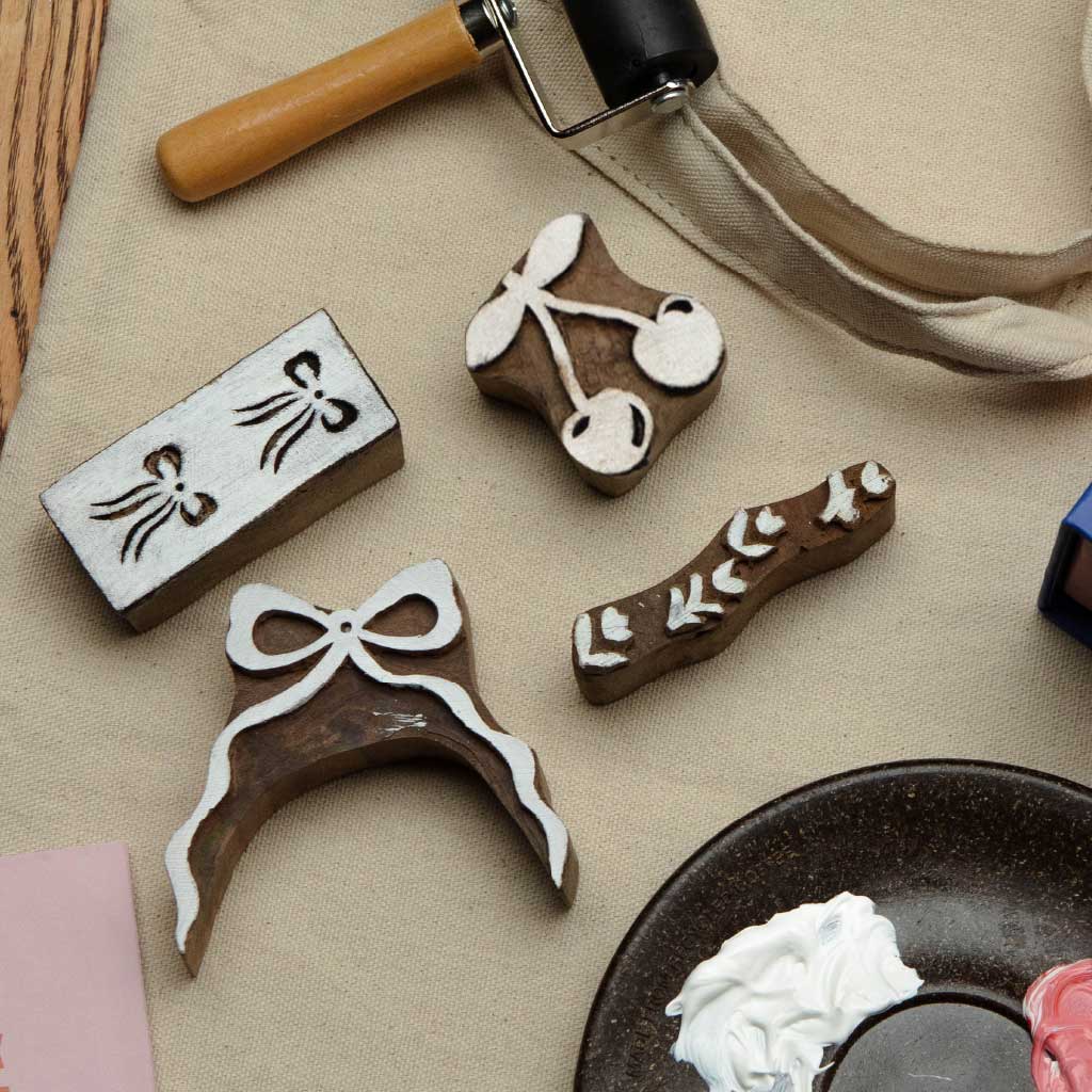 Everything you need to create your own block printed tote bag. Inside this block printing kit, you’ll find all the tools you need to learn the art of block printing, including hand-carved wooden blocks, five block printing inks, and a handcrafted tote bag. No experience necessary - simply follow the easy steps in the guide and take a moment to slow down, get creative and enjoy the process.