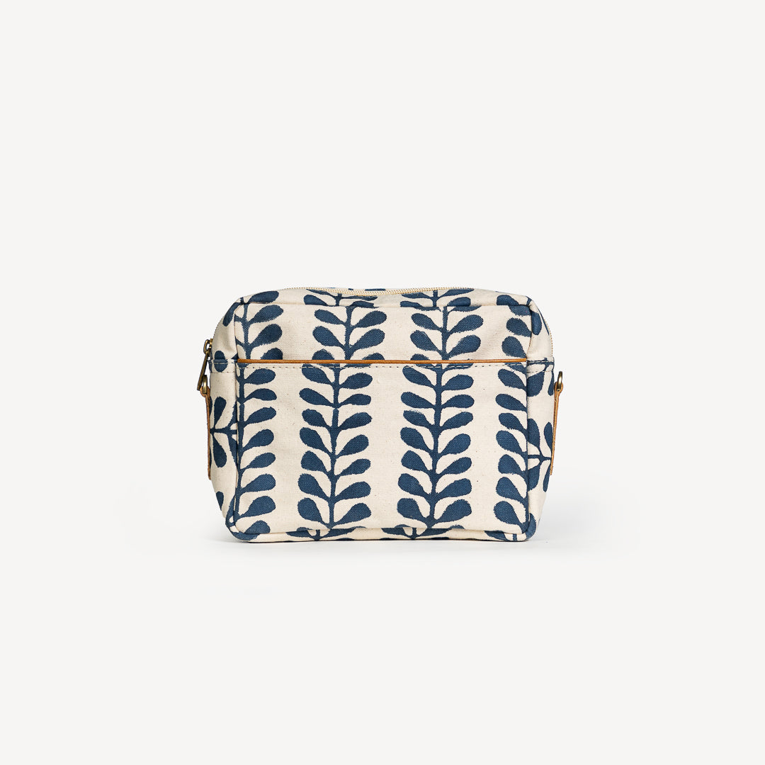 The perfect everyday crossbody bag handcrafted from block printed, hand woven cotton canvas. This is a camera bag with a difference - made slowly and ethically, preserving age old methods of hand making. Perfectly practical with one slip pocket on the exterior, ideal for keeping your phone handy and one zipper pocket on the fully lined interior. Fully adjustable, recycled leather crossbody strap to get that perfect fit.